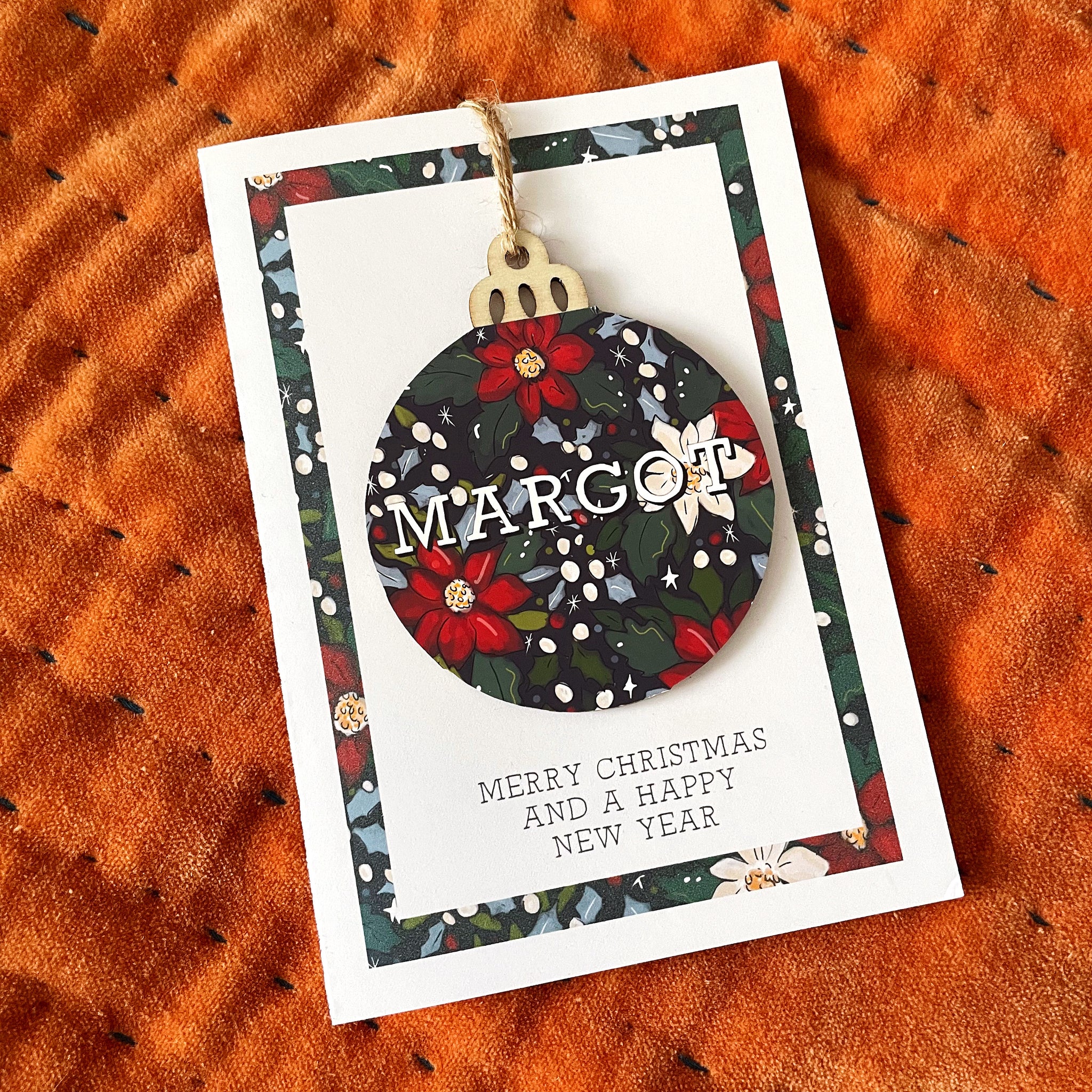 ** PLEASE** write in the name box the colour of the pattern you would like and the name for each of the cards. Please note that the longer the name the smaller it will appear on the hanging decoration.