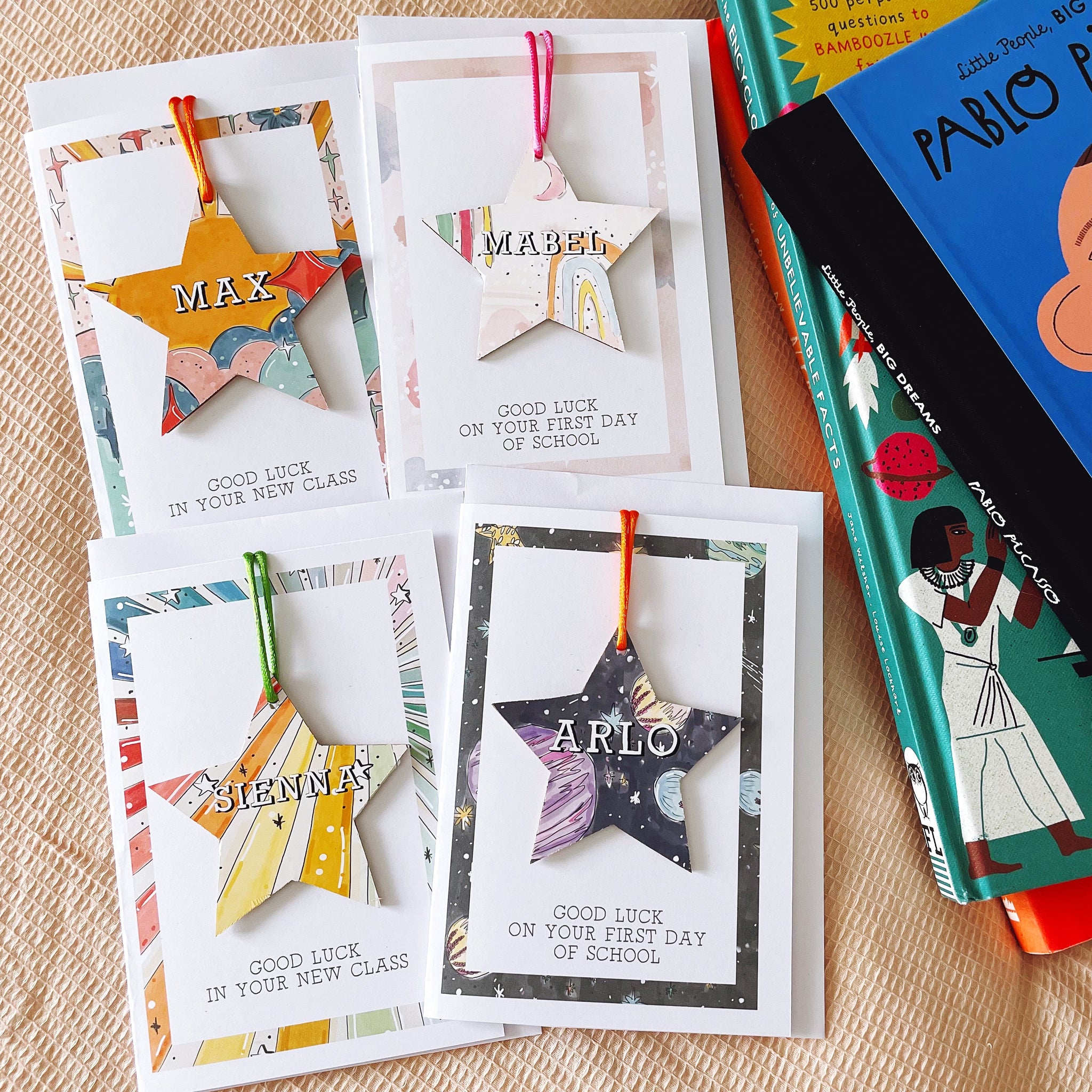 The PERFECT card for all those children starting school, heading back or starting a new class in September. Each Card comes with a hanging wooden star decoration.